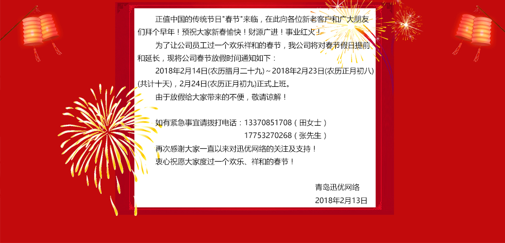 山東迅優(yōu)傳媒有限公司2018年放假通知