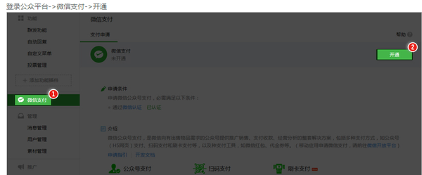 1、登陸微信公眾平臺——微信支付,點擊開通即可