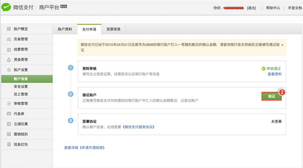 step1:登錄公眾平臺->微信支付->賬戶驗證