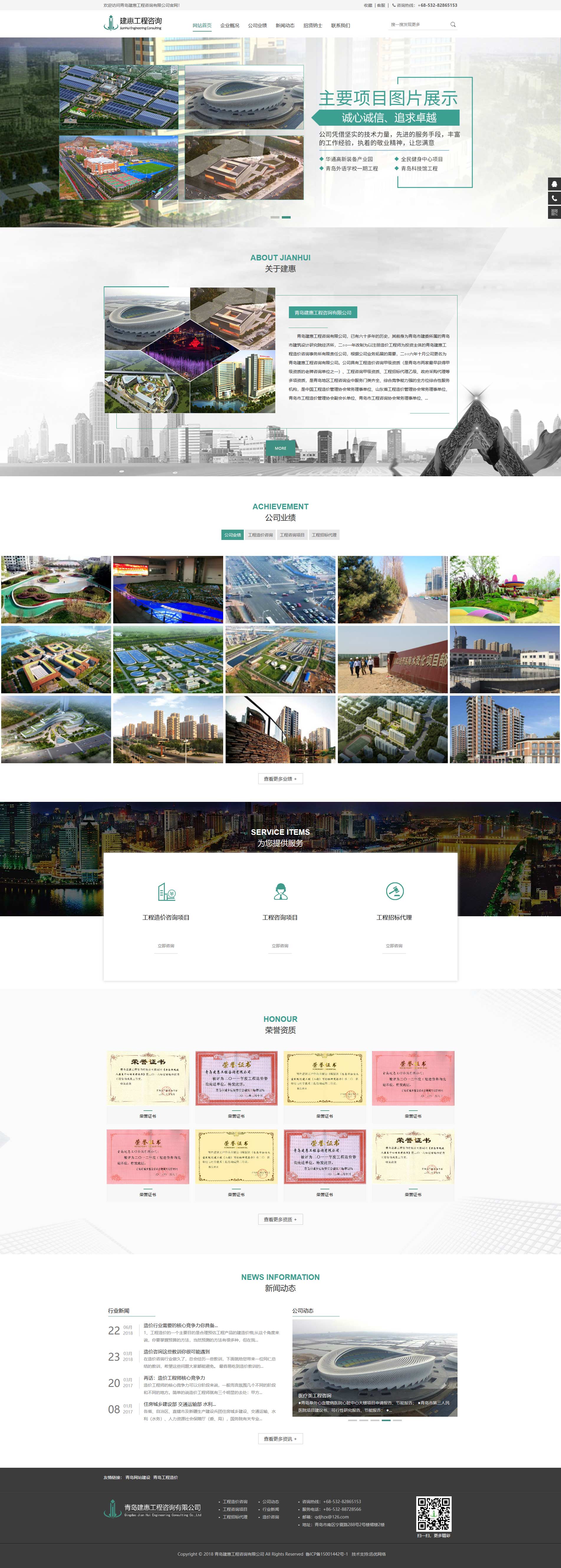 青島建惠工程咨詢有限公司,已有六十多年的歷史,其前身為青島市建委所屬的青島市建筑設(shè)計(jì)研究院經(jīng)濟(jì)所,二○○一年改制為以注冊(cè)造價(jià)工程師為投資主體的青島建惠工程造價(jià)咨詢事務(wù)所有限責(zé)任公司,根據(jù)公司業(yè)務(wù)拓展的需要,二○○六年十月公司更名為青島建惠工程咨詢有限公司。公司具有工程造價(jià)咨詢甲級(jí)資質(zhì)(是青島市兩家最早獲得甲級(jí)資質(zhì)的老牌咨詢單位之一)、工程咨詢甲級(jí)資質(zhì)、工程招標(biāo)代理乙級(jí)、政府采購代理等多項(xiàng)資質(zhì),是青島地區(qū)工程咨詢業(yè)中服務(wù)門類齊全、綜合競爭能力強(qiáng)的全方位綜合性服務(wù)機(jī)構(gòu),是中國工程造價(jià)管理協(xié)會(huì)常務(wù)理事單位、山東省工程造價(jià)管理協(xié)會(huì)常務(wù)理事單位、青島市工程造價(jià)管理協(xié)會(huì)副會(huì)長單位、青島市工程咨詢協(xié)會(huì)常務(wù)理事單位、青島市節(jié)能協(xié)會(huì)理事單位。