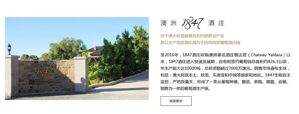2016年,澳洲1847酒莊實施“澳中直通車”, 實現(xiàn)了進貨價、零售價“雙統(tǒng)一”,摒棄傳統(tǒng)分級代理模式,倡導“價格回歸價值”,實踐1847出產(chǎn)高性價比葡萄酒的承諾,讓利廣大合作伙伴和中國消費者。