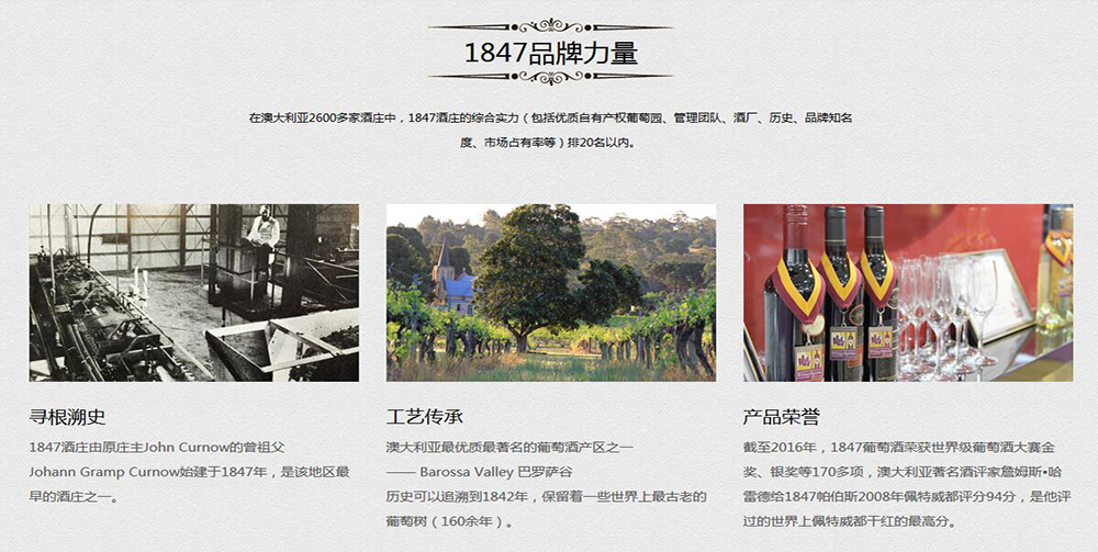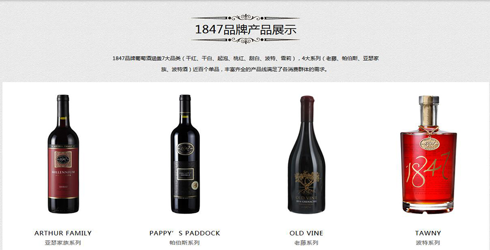 1847酒莊擁有的四大優(yōu)勢是本次革新的堅實基礎:大面積自有老藤葡園,保證1847葡萄酒的“高品質和一貫性”的同時,又降低了原料成本;關稅逐降及匯率穩(wěn)定等因素使酒莊運營成本降低;市場成熟,品系豐富,7大系列近百種酒品全面滿足消費者需求;自有進口公司和商檢監(jiān)管倉庫,全產(chǎn)業(yè)鏈運營保證酒品質量的同時降低了成本。