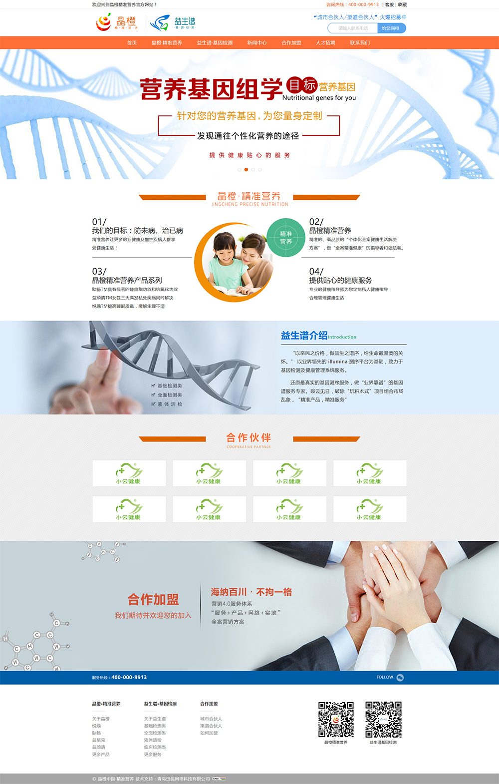 “晶橙·精準(zhǔn)營(yíng)養(yǎng)”以營(yíng)養(yǎng)基因組學(xué)、分子營(yíng)養(yǎng)學(xué)、分子生物學(xué)等為理論基礎(chǔ),整合藥物動(dòng)力學(xué)、臨床營(yíng)養(yǎng)學(xué)、中醫(yī)學(xué)、現(xiàn)代醫(yī)學(xué)等先進(jìn)理念和技術(shù),研發(fā)精準(zhǔn)、安全、高效、穩(wěn)定的個(gè)體化營(yíng)養(yǎng)干預(yù)產(chǎn)品。從基因組層面解決營(yíng)養(yǎng)素對(duì)基因表達(dá)的調(diào)節(jié),精準(zhǔn)的利用營(yíng)養(yǎng)學(xué)原理改善人體健康。
