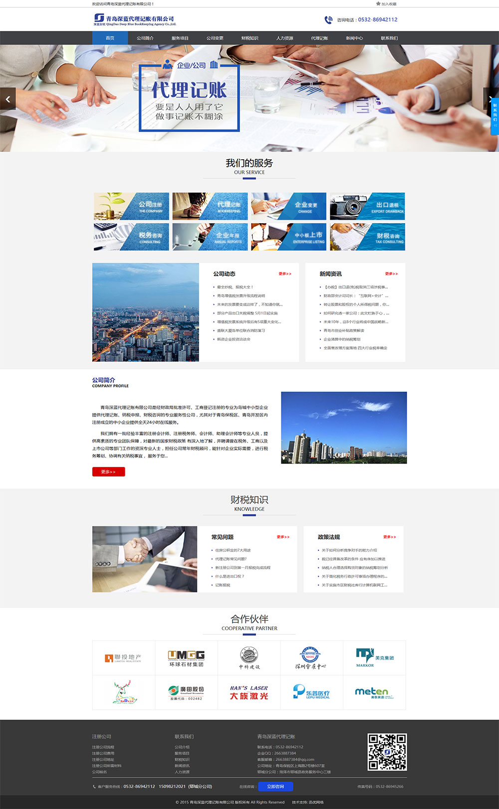 青島深藍(lán)代理記賬有限公司是經(jīng)財政局批準(zhǔn)許可、工商登記注冊的專業(yè)為島城中小型企業(yè)提供代理記賬、納稅申報,尤其對于青島保稅區(qū)、青島開發(fā)區(qū)內(nèi)注冊的企業(yè)提供全天24小時在線服務(wù)。