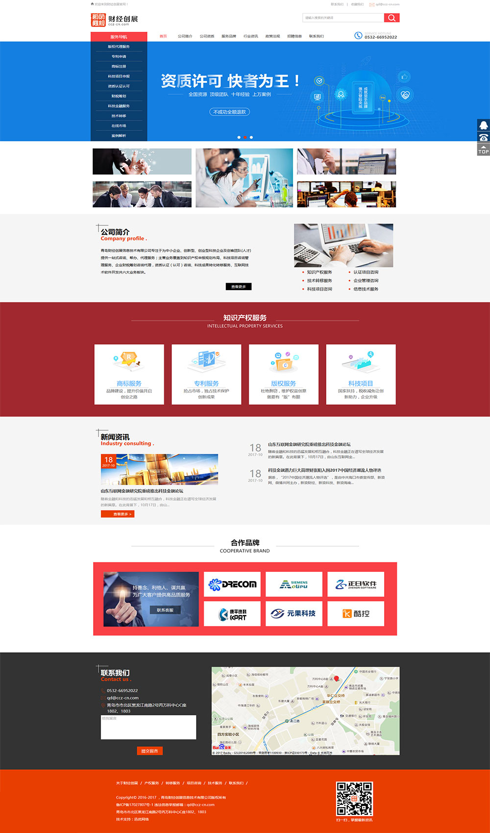 青島財經(jīng)創(chuàng)展信息技術(shù)有限公司專注于為中小企業(yè)、創(chuàng)新型、創(chuàng)業(yè)型科技企業(yè)及創(chuàng)客團隊(人才)提供一站式咨詢、幫辦、代理服務;主營業(yè)務覆蓋到知識產(chǎn)權(quán)申報規(guī)劃布局、科技項目咨詢管理服務、企業(yè)財稅籌劃咨詢代理,資質(zhì)認證(認可)咨詢、科技成果轉(zhuǎn)化轉(zhuǎn)移服務、互聯(lián)網(wǎng)技術(shù)軟件開發(fā)共六大業(yè)務板塊。