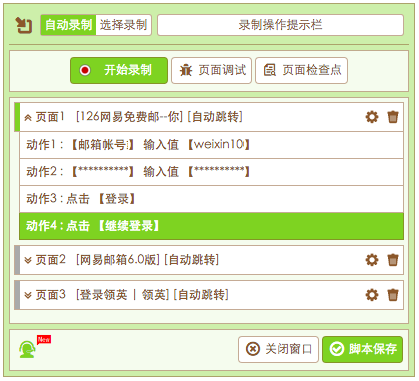 自動錄制模式:只需要您在頁面上進(jìn)行操作,會自動錄制您的所有操作;