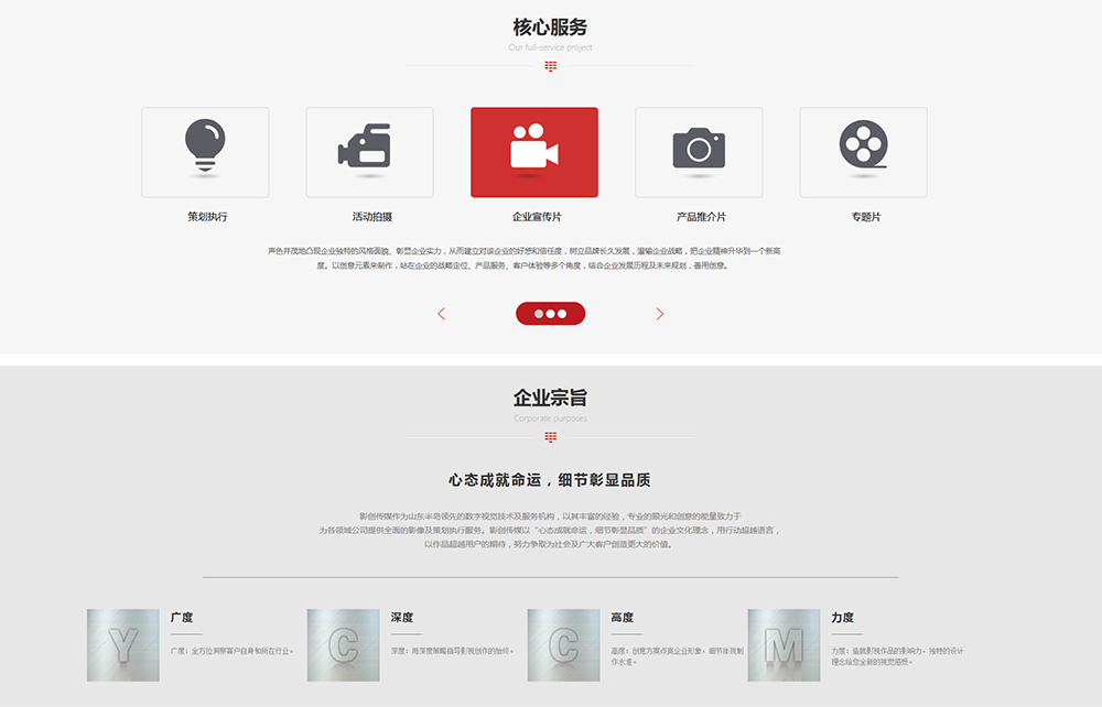 青島影創(chuàng)傳媒有限公司于2009年成立,作為山東半島領(lǐng)先的數(shù)字視覺技術(shù)及服務(wù)機(jī)構(gòu),以其豐富的經(jīng)驗(yàn),專業(yè)的眼光和創(chuàng)意的能量致力于為各領(lǐng)域公司提供全面的影視廣告服務(wù)。影創(chuàng)傳媒以“心態(tài)成就命運(yùn),細(xì)節(jié)彰顯品質(zhì)”的企業(yè)文化理念,用行動(dòng)超越語言,以作品超越用戶的期待,努力爭(zhēng)取為社會(huì)及廣大客戶創(chuàng)造更大的價(jià)值。